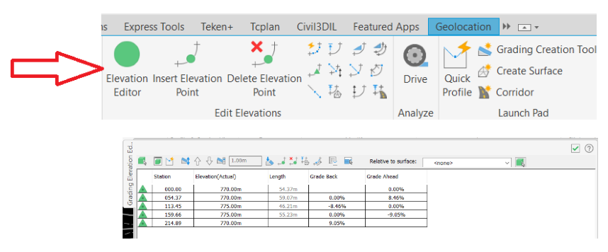 באמצעות פקודת GRADING ניתן ליצור בקלות ובמהירות משטחים לפי דרישה (ובין היתר גם להטמיע אותם על גבי המדידה), ללא צורך בשימוש ב Assembly או Corridor המיועדים לכבישים.